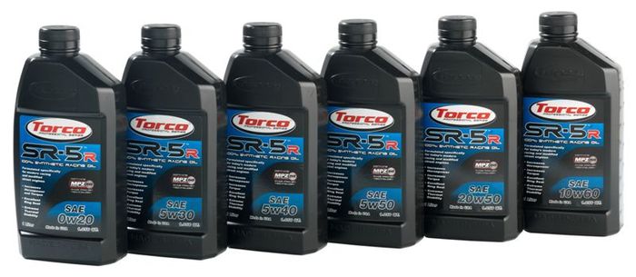 Torco SR-5R Synthetic Racing Oil was developed under the most severe racing conditions and offers the highest level of performance and protection for highly modified race engines. SR-5R utilizes Group IV/V synthetic base oil chemistries and additive technologies engineered to withstand extreme loads, constant severe temperatures, and maximum engine revolutions. SR-5R utilizes Torco's race-specific MPZ® technology which reduces frictional losses for maximizing horsepower and torque. Available in 0W-20, 5W-30, 5W-40, 5W-50, 20W-50 and 10W-60.