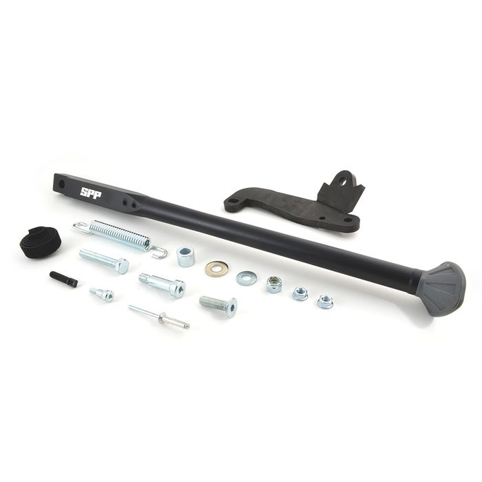 The SPP replacement side stands are high-quality aftermarket parts designed to replace the original side stand on your motorcycle. These stands are made from durable materials and are built to last, providing a reliable and secure foundation for your bike when it's parked. SPP replacement side stands are available for a wide variety of makes and models. They are easy to install, meaning you don't have to worry about any modifications or alterations. If you're in need of a new side stand for your motorcycle, the SPP replacement side stands are a great option that will provide long-lasting performance and reliability. works great with the side stand rubber tie for added safety SPP-ASOT-387BLK.