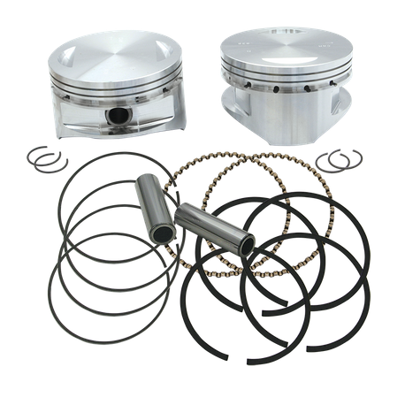 These forged, 4" bore flat-topped pistons are intended for use in S&S? 4" bore Super Sidewinder? engines as well as other custom 4" bore engines.