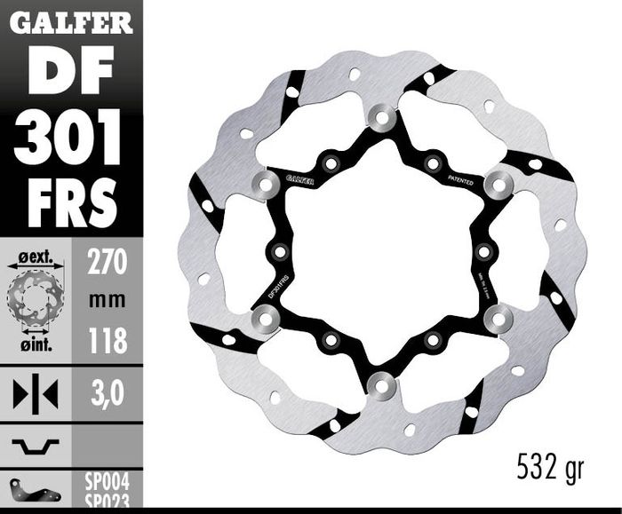 A 270mm floating, patented Wave rotor for optimum pad-to-rotor contact, special grooves keep brake system cooler by allowing air to pass over every point of brake pad surface. Every high-quality, Galfer-patented Wave rotor is made from a proprietary mix of virgin high carbon 420 stainless steel, laser cut (never stamped), double disc-parallel ground to assure perfect parallel flatness and heat treated to each specific application. KBA and TUV approved. Full instructions provided along with any technical help needed! Precision made in the Galfer factory in Spain.