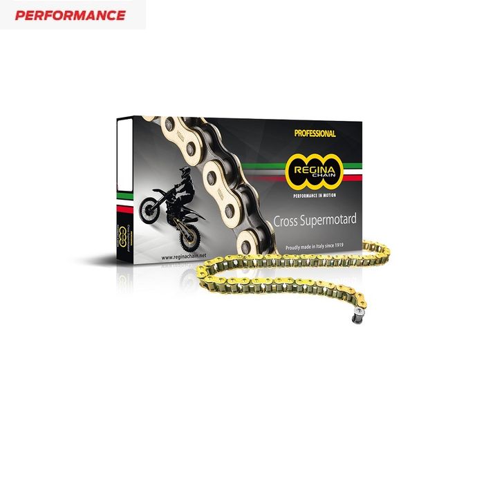 Built for elite competition, the Regina 520 GPXV is the same proven chain ridden by MXGP champions like Jorge Prado and Jeffrey Herlings. Featuring chromized pins, shaped bushings, shot‑peened plates, and a tensile strength of ~35 000 N, it delivers bullet‑proof durability and smooth power transfer in a lightweight, 120‑link gold/black design. Ideal for MXGP/Supercross riders demanding top-tier performance.