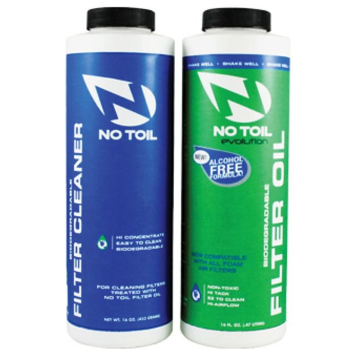 The Evolution Starter Pack. The No-Toil Evolution 2-pack gives you everything you need to perfectly maintain a filter. No-Toil Biodegradable Evolution Filter Oil gives you the best protection, while No-Toil Biodegradable Cleaner makes cleaning your dirty a filter a breeze without solvents.