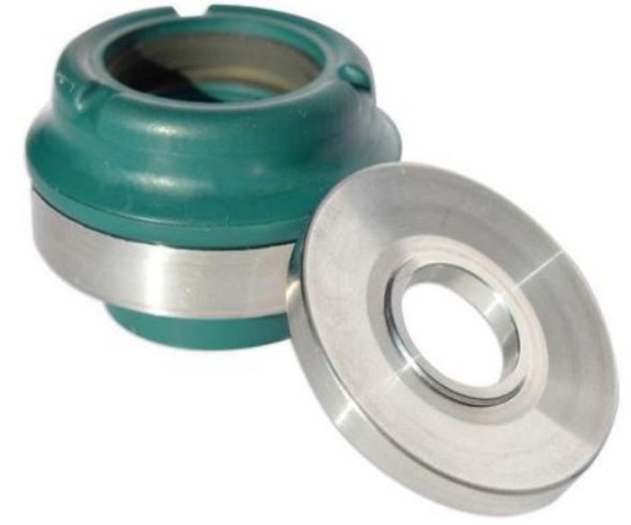 The seal head unit consists of five pre-assembled components: an integrated monotube seal, a washer, a bushing, the seal head and a dirt scraper. The integrated monotube is itself an assembly of five pre-assembled components; an oil seal, a bumper, an O-ring and a back up ring to support the main lip under high pressure.