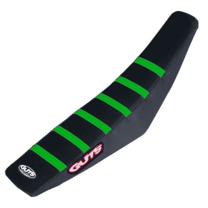 GUTS - KAWASAKI STOCK HEIGHT RIBBED SEAT COVER - KX GREEN RIBS BLACK SIDES BLACK TOP