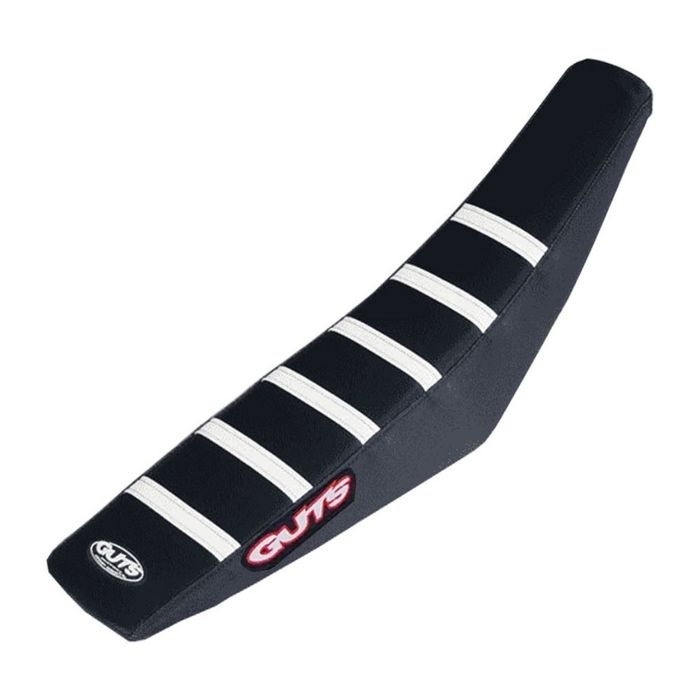 GUTS - YAMAHA STOCK HEIGHT RIBBED SEAT COVER WHITE RIBS BLACK SIDES BLACK TOP