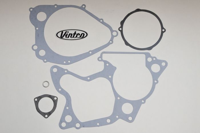 VintCo has all new engine gasket kits to help on your engine lower end rebuild. These gaskets are made with modern materials and manufacturing techniques to ensure an as good or better than OEM fitment and performance. The OEM part numbers are provided as a reference to ensure exact fitment. This kit fits all 1979-1980 Suzuki RM125 models. This engine gasket kit includes the crankcase gasket, clutch cover gasket, magneto cover gasket, exhaust gasket, and drain plug gasket to complete your build with ease. These newly manufactured gaskets from VintCo will help you keep the ride going!