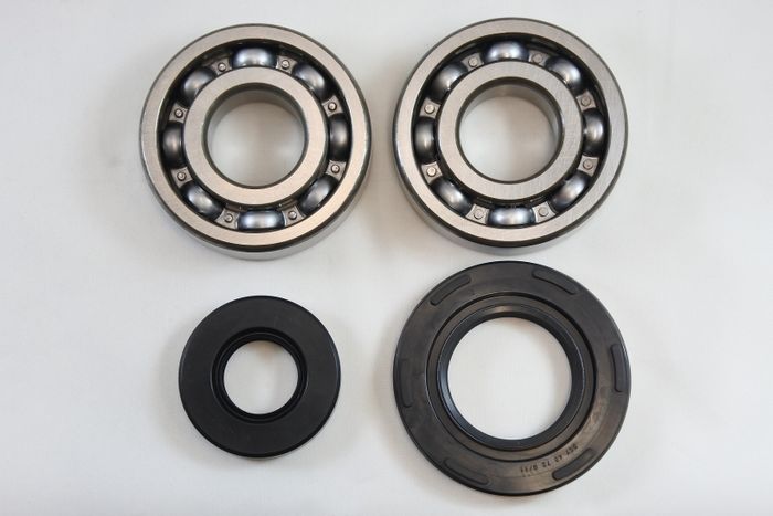 Main Bearings are crucial to your vintage bike engine rebuild. Having new main bearings with new main seals is a must and VintCo has the solution. These engine main bearing kits are made with modern materials and manufacturing techniques to ensure an as good or better than OEM fitment and performance. The high quality main bearings. The OEM part numbers are provided as a reference to ensure exact fitment. This kit includes the two main bearings and two oil seals to complete your build with ease. This main bearing kit will fit all Suzuki 1976-77 RM370 and 1978 RM400 models. These newly manufactured engine main bearing kits from VintCo will help you keep the ride going! Complete Main Bearing Kit. Includes two bearings two crankshaft seals. Bearings / OE# 09262-30077 Seal / OE# 09283-24001 Seal / OE# 09289-40004
